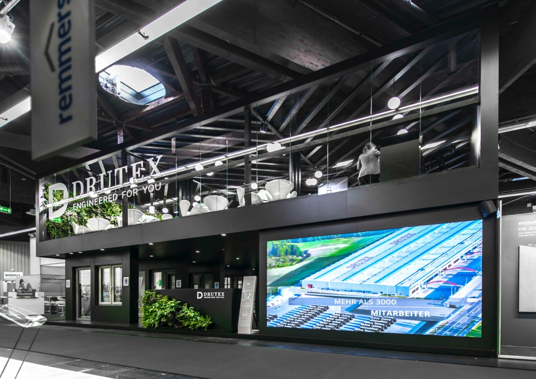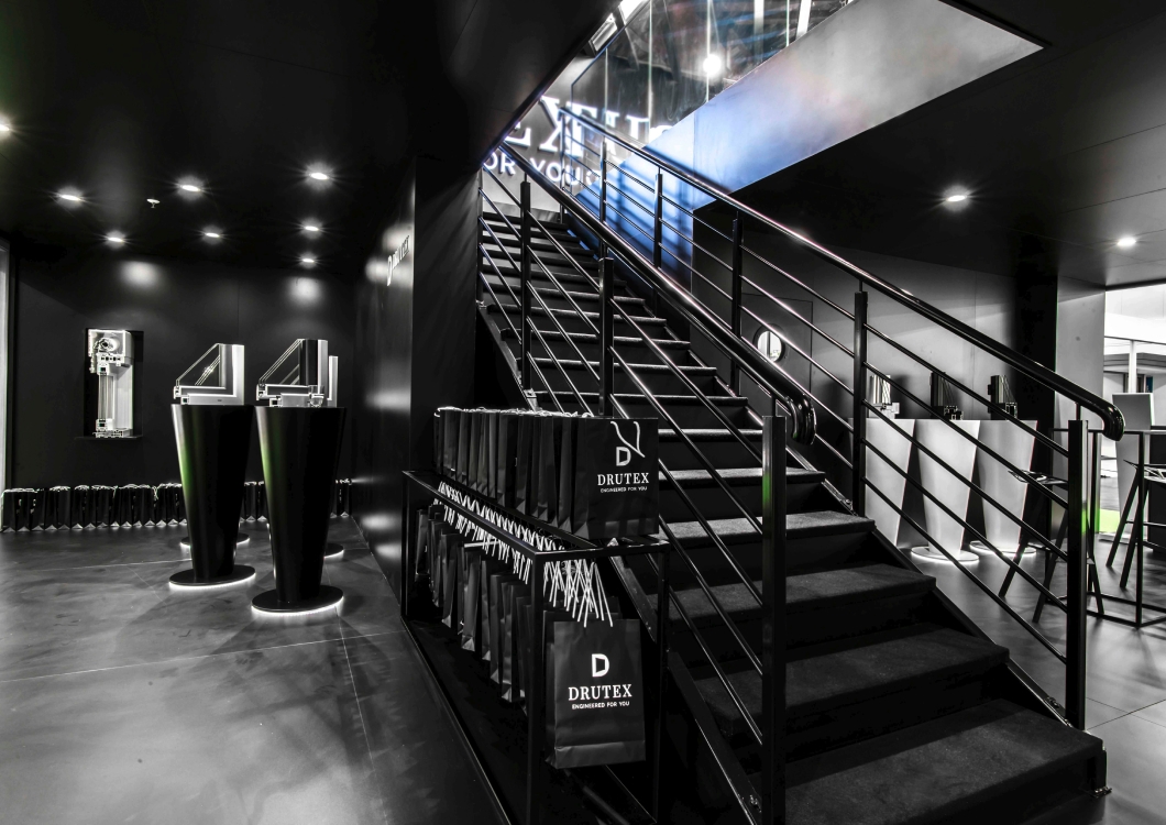 Projekt stoiska Drutex na targach Frontale łączy ze sobą industrialny klimat z wyczuwalną nutą elegancji i wyrafinowania. Nawiązując do brandingu marki musieliśmy przygotować z jednej strony przestrzeń z odpowiednio wyeksponowanymi produktami, a z drugiej strony komfortowe miejsce do spotkań biznesowych.